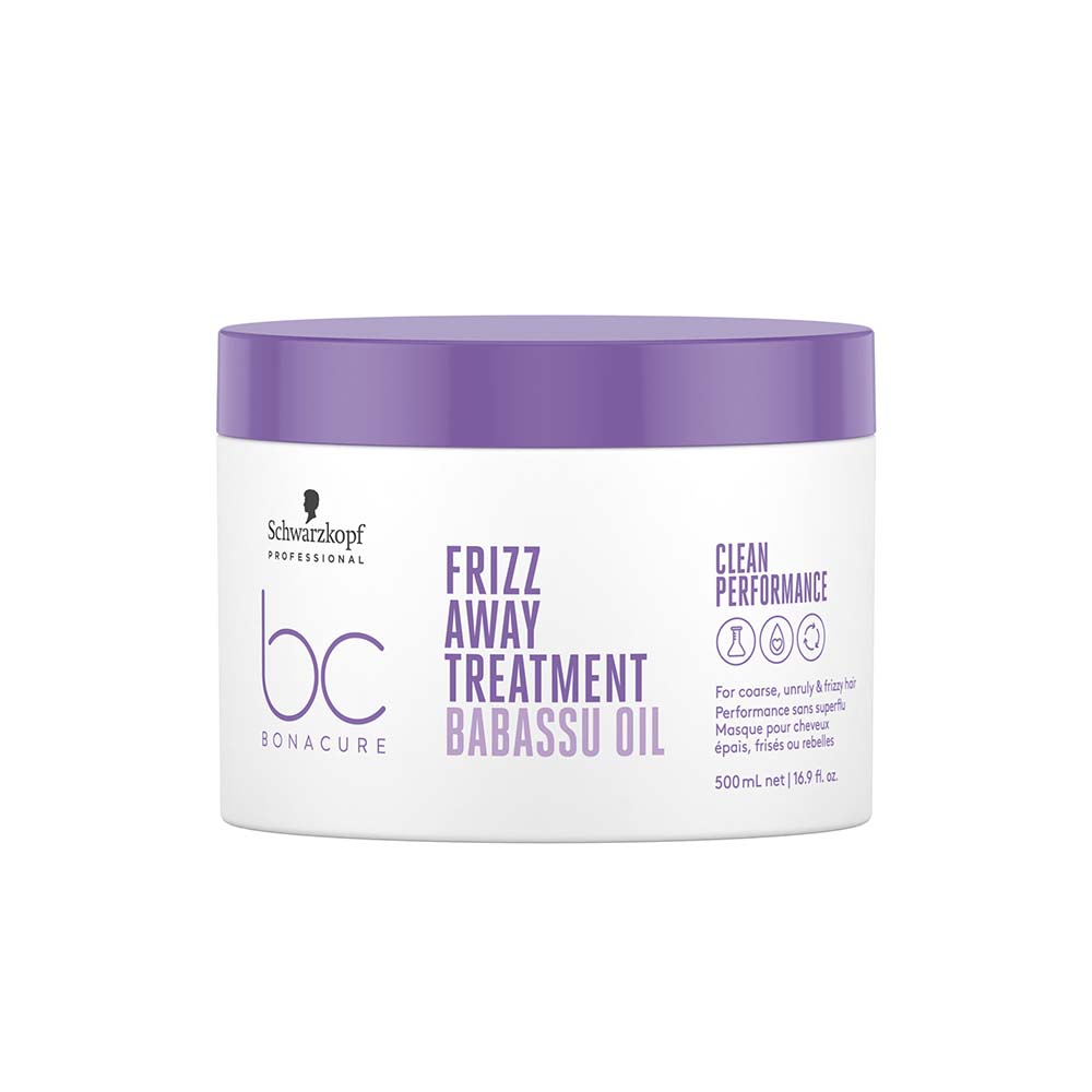 Masque capillaire intense de BC Bonacure Frizz Away, spécialement formulé pour discipliner et nourrir les cheveux rebelles, épais et frisés. Il offre à tous les types de cheveux un contrôle des frisottis longue durée, pour des cheveux lisses et brillants. Produit capillaire végan*.